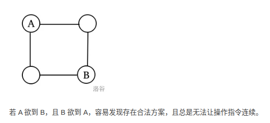注意要走简单路径,也就是说不存在绕路让道的可能性。容易推出:若输入合法,总能找到一种方式使得每个人受到的指令是连续给出的。