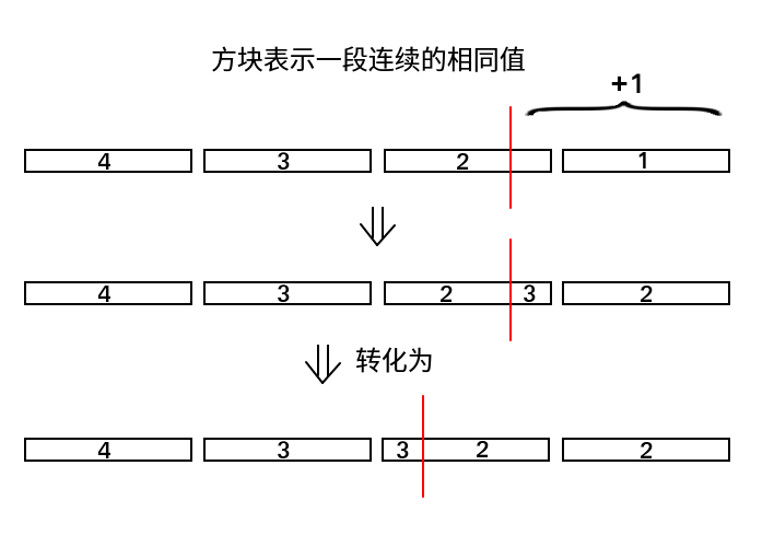 - 维护每个数的位置,相当于给值在 \([P_i,i-1]\) 的元素做区间 +1,显然右端点是单增的,那么就转化为上一题。