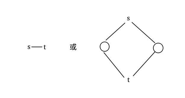 - 最后看看是否存在边 \((s, t)\) 且不存在上一种情况(也就是 \(s,t\) 不连通),如果满足就连起来。